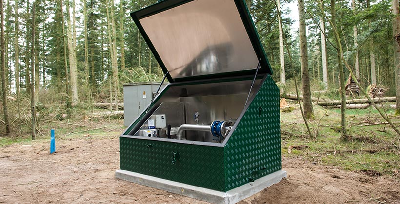 Vi råder blandt andet over standardmodellen 850 i glasfiber med færdigstøbt betonplade. Model 2100 fremstilles bl.a. også til større installationer og trykforøgere i et design, som giver god plads til service af boringen.